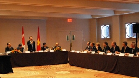 (VOV5) - Trong khuôn khổ chuyến thăm chính thức Canada, ngày 3/12/2013, Phó Thủ tướng Chính phủ Vũ Văn Ninh có cuộc tọa đàm với một số lãnh đạo doanh nghiệp chủ chốt của Canada, gặp Chủ tịch Trung tâm Toronto, tổ chức tư vấn uy tín của Canada trong lĩnh vực giám sát tài chính, gặp đại diện cộng đồng người Việt Nam đang sinh sống tại Toronto.
