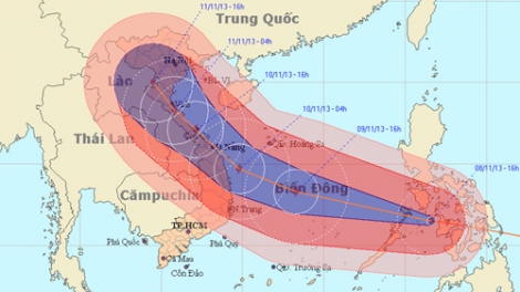 Tối nay, siêu bão Haiyan đi vào phía Đông Nam biển Đông