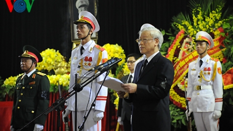 (VOV5)- Đúng 7h sáng, lễ truy điệu Đại tướng Võ Nguyên Giáp- nguyên Ủy viên Bộ Chính trị, nguyên Bí thư Quân ủy Trung ương, nguyên Phó Thủ tướng thường trực Chính phủ, nguyên Bộ trưởng Bộ Quốc phòng, Tổng Tư lệnh Quân đội nhân dân Việt Nam - diễn ra trang trọng tại Nhà tang lễ Quốc gia (số 5, Trần Thánh Tông, Hà Nội).