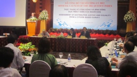 (VOV5) - Báo cáo Chỉ số công lý năm 2012 đánh giá thực trạng về công bằng và bình đẳng dựa trên ý kiến của người dân Việt Nam vừa được Chương trình phát triển Liên hợp quốc (UNDP) tại Việt Nam phối hợp với Hội Luật gia Việt Nam, Trung tâm Nghiên cứu phát triển và hỗ trợ cộng đồng, công bố hôm 3/10, tại Hà Nội.
