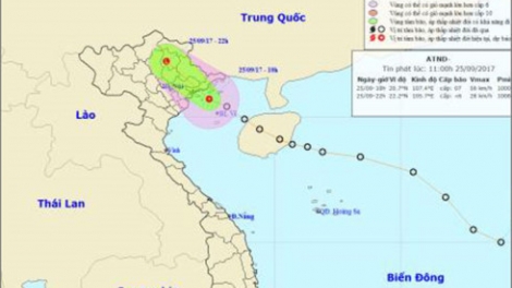 (VOV5) - Chiều tối và đêm 25/9, ở phía Tây Bắc Bộ có mưa, có nơi mưa vừa, mưa to. Khu vực Hà Nội, từ chiều và đêm nay có mưa, mưa vừa, có nơi mưa to.