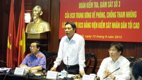 (VOV5)- Sáng 12/9, tại Hà Nội, Đoàn công tác Ban Chỉ đạo Trung ương về Phòng, chống tham nhũng do ông Nguyễn Bá Thanh, Ủy viên Trung ương Đảng, Phó Trưởng ban Thường trực Ban Chỉ đạo Trung ương về Phòng, chống tham nhũng, Trưởng ban Nội chính Trung ương làm Trưởng đoàn, làm việc với Ban Cán sự đảng Viện Kiểm sát nhân dân tối cao.