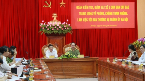 (VOV5) - Sáng nay, 11/9, Đoàn kiểm tra, giám sát số 2 của Ban chỉ đạo Trung ương về phòng chống tham nhũng do Ủy viên Bộ Chính trị, Bộ trưởng Bộ Công an Trần Đại Quang làm Trưởng đoàn, làm việc với Ban thường vụ Thành ủy Hà Nội.
