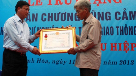 (VOV5) - Thừa ủy quyền của Chủ tịch nước, chiều 11/8, Bộ trưởng Bộ Giao thông Vận tải Đinh La Thăng đến gia đình anh Trần Hữu Hiệp (người hy sinh sau khi cứu nhiều người thoát chết trong vụ chìm ca nô trên biển huyện Cần Giờ, thành phố Hồ Chí Minh.