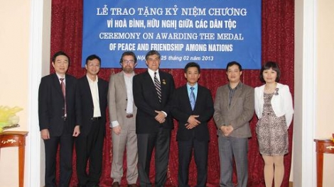 (VOV5)- Ngày 19/7, tại Hà Nội, Chủ tịch Liên hiệp các tổ chức hữu nghị Việt Nam Vũ Xuân Hồng trao Kỷ niệm chương “Vì hòa bình, hữu nghị giữa các dân tộc” tặng Giáo sư William Walmsley Hall, Giám đốc tổ chức The Atlantic Philanthropies (AP), vì những đóng góp tích cực trong công cuộc xóa đói giảm nghèo tại Việt Nam.