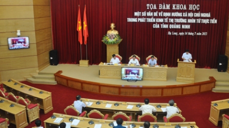 (VOV5) - Ngày 14/7, Tỉnh ủy Quảng Ninh và Hội đồng Lý luận Trung ương phối hợp tổ chức tọa đàm khoa học về một số vấn đề định hướng xã hội chủ nghĩa trong phát triển kinh tế thị trường nhìn từ thực tiễn ở Quảng Ninh.