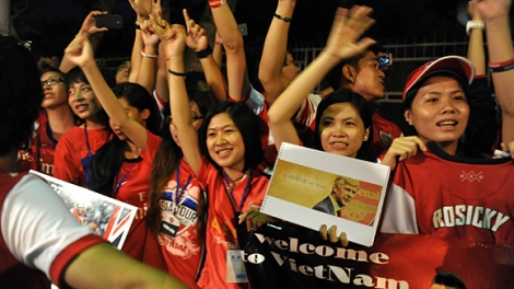 Cổ động viên Việt Nam chào đón các cầu thủ Arsenal đến Việt Nam