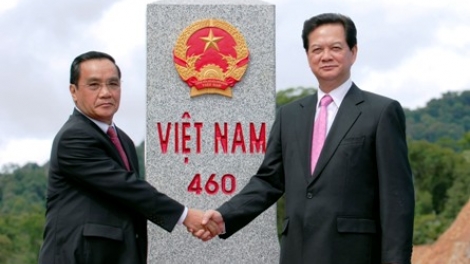 (VOV5) - Sáng 9/7, tại khu vực cửa khẩu Thanh Thủy (tỉnh Nghệ An) và Nậm On (tỉnh Bo-ly-khăm-xay của Lào) Thủ tướng Nguyễn Tấn Dũng cùng Thủ tướng Lào Thongsing Thammavong đồng chủ trì Lễ chào mừng hoàn thành công tác tăng dày và tôn tạo mốc biên giới Việt Nam – Lào trên thực địa và khánh thành mốc đại số 460.