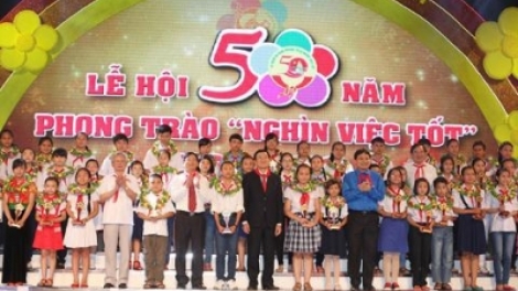 (VOV5) - Tối 15/5, tại tỉnh Bắc Ninh diễn ra Lễ hội 50 năm phong trào Nghìn việc tốt và tuyên dương 72 dũng sỹ Nghìn việc tốt. Chủ tịch nước Trương Tấn Sang và các đại biểu về với lễ hội cùng ôn lại lịch sử ra đời và phát triển của Phong trào “Nghìn việc tốt”.