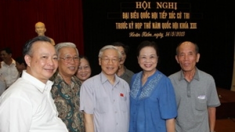 (VOV5) - Ngày 14/5, Tổng Bí thư Ban chấp hành Trung ương Đảng Cộng sản Việt Nam Nguyễn Phú Trọng cùng đoàn đại biểu Quốc hội (QH) thành phố Hà Nội tiếp xúc cử tri các quận Hoàn Kiếm, Tây Hồ nhằm chuẩn bị kỳ họp thứ 5, Quốc hội Khóa XIII.