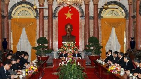(VOV5) - Ngày 27/04, tại Phủ Chủ tịch, Chủ tịch nước Trương Tấn Sang tiếp ông Ni-cai Tô-si-hi-rô, Chủ tịch Liên minh Nghị sĩ hữu nghị Nhật Bản - Việt Nam, cùng đại diện một số tập đoàn hàng đầu Nhật Bản đang thăm và làm việc tại Việt Nam.