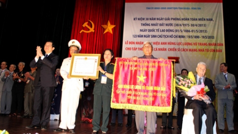 (VOV5)- Nhân kỷ niệm 38 năm ngày giải phóng miền Nam, thống nhất đất nước (30/4/1975- 30/4/2013), ngày 26/4, tại thành phố Bà Rịa, tỉnh Bà Rịa – Vũng Tàu, Chủ tịch nước Trương Tấn Sang trao tặng danh hiệu Anh hùng lực lượng vũ trang nhân dân cho tập thể và 4 cá nhân là chiến sĩ cách mạng nhà tù Côn Đảo.