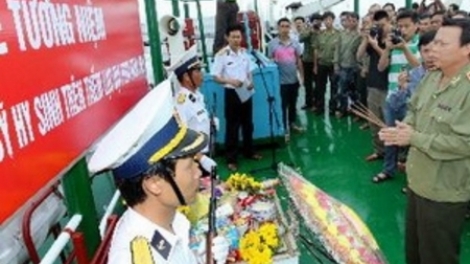 (VOV5) - Lễ dâng hương và thả vòng hoa tưởng niệm các anh hùng liệt sỹ hy sinh bảo vệ toàn vẹn chủ quyền biển đảo Tổ quốc, tại khu vực đảo Cô Lin, quần đảo Trường Sa (Khánh Hòa) vừa diễn ra nhân chuyến thăm Trường Sa và nhà giàn DK1 của đại diện các ban, ngành của Việt Nam.