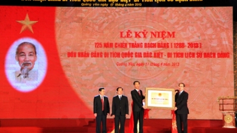 (VOV5) - Tối 17/4, tại thị xã Quảng Yên, tỉnh Quảng Ninh tổ chức lễ kỷ niệm 725 năm chiến thắng Bạch Đằng (1288 – 2013) và đón nhận Bằng di tích quốc gia đặc biệt.