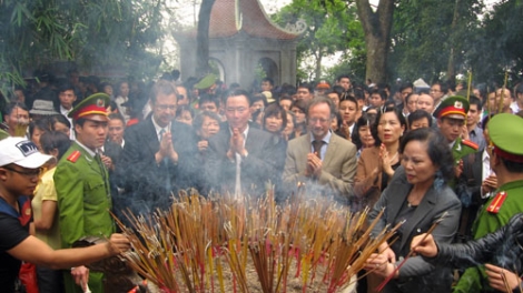 Ngày 13-4 (mùng 4, tháng 3 âm lịch), đoàn khách gồm: Ông Phạm Sanh Châu-Đại sứ Đặc mệnh Toàn quyền Việt Nam tại Vương quốc Bỉ; Ngài Bruno Aglelet-Đại sứ Đặc mệnh Toàn quyền Vương quốc Bỉ tại Việt Nam; bà Lê Thị Minh Lý- Ủy viên Hội đồng Di sản Văn hóa Quốc gia; Giáo sư Susan Bayly; Phó Văn phòng Đại diện UNESCO Châu Á-Thái Bình Dương ngài Etienne Clemennt…đã đến chúc mừng tỉnh Phú Thọ nhân dịp Tín ngưỡng Thờ cúng Hùng Vương được UNESCO công nhận là Di sản văn hóa tinh thần phi vật thể đại diện của nhân loại