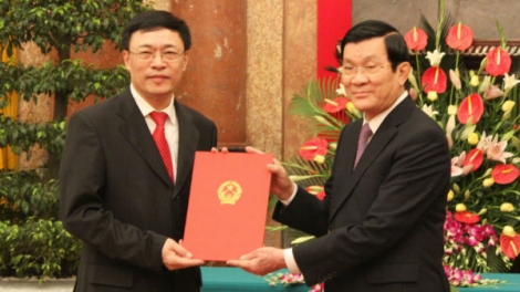 (VOV5) - Chiều 2/4, Chủ tịch nước Trương Tấn Sang trao quyết định phong hàm Đại sứ nước CHXHCN Việt Nam cho 35 cán bộ, công chức Bộ Ngoại giao.