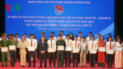 (VOV5)- Sáng nay, Đoàn Thanh niên Cộng sản Hồ Chí Minh thành phố Hà Nội tổ chức Mít tinh kỷ niệm 82 năm ngày thành lập Đoàn Thanh niên Cộng sản Hồ Chí Minh 26/3, gặp mặt các thế hệ cán bộ đoàn và Tuyên dương Bí thư chi đoàn giỏi Thủ đô năm 2012.