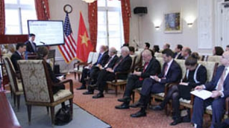(VOV5) - Tình hình kinh tế và môi trường đầu tư ở Việt Nam và quan hệ Việt Nam-Mỹ trong năm 2013 là nội dung chính của buổi đối thoại giữa Đại sứ Việt Nam tại Mỹ Nguyễn Quốc Cường với các doanh nghiệp thành viên của Phòng Thương mại Mỹ (USCC) và Hội đồng Doanh nghiệp Mỹ-ASEAN (USABC), hôm 28/01. Đại diện các doanh nghiệp Mỹ đánh giá cao và tin tưởng vào nỗ lực của Chính phủ Việt Nam trong thời gian qua đã ổn định kinh tế vĩ mô, kiềm chế lạm phát và tiếp tục cơ cấu lại nền kinh tế.