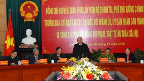 (VOV5) - Ngày 6/1, Đoàn công tác của Chính phủ do Phó Thủ tướng Nguyễn Xuân Phúc, Trưởng Ban Chỉ đạo quốc gia phòng, chống tội phạm làm trưởng đoàn, làm việc với thành phố Hải Phòng về công tác phòng chống tội phạm, trật tự an toàn xã hội.