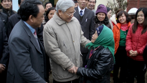 (VOV5) - Tiếp tục chuyến công tác tại các tỉnh Tây Bắc, ngày 6/1, Tổng Bí thư Nguyễn Phú Trọng thăm và làm việc tại huyện Mường Khương, tỉnh Lào Cai kiểm tra việc thực hiện các Nghị quyết của Đảng và nhiệm vụ năm 2012. Mường Khương là huyện nằm trong 62 huyện đặc biệt khó khăn của cả nước.