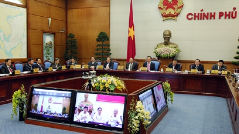 Chính phủ cùng lãnh đạo các địa phương xem xét dự thảo Nghị quyết về một số giải pháp tháo gỡ khó khăn cho sản xuất kinh doanh, hỗ trợ thị trường, giải quyết nợ xấu.