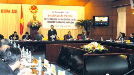 (VOV5) - Sáng 24/12, tại Hà Nội, Ủy ban Pháp luật của Quốc hội tổ chức phiên giải trình về việc ban hành văn bản quy định chi tiết, hướng dẫn thi hành luật, pháp lệnh được Quốc hội, Ủy ban Thường vụ Quốc hội ban hành