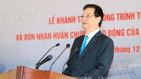 (VOV5) - Sau 7 năm xây dựng, ngày 23/12, Thuỷ điện Sơn La chính thức đi vào hoạt động. Thủ tướng Nguyễn Tấn Dũng tham dự và cắt băng khánh thành.