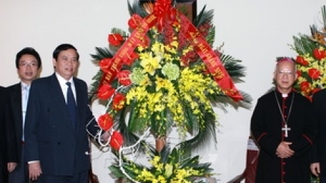 (VOV5) - Chiều 21/12, Đoàn đại biểu Uỷ ban Trung ương Mặt trận Tổ quốc Việt Nam do ông Vũ Trọng Kim, Ủy viên Trung ương Đảng, Phó Chủ tịch kiêm Tổng thư ký Ủy ban Trung ương Mặt trận tổ quốc Việt Nam dẫn đầu đến thăm, chúc mừng Tổng giám mục Hà Nội nhân dịp lễ Giáng sinh năm 2012.