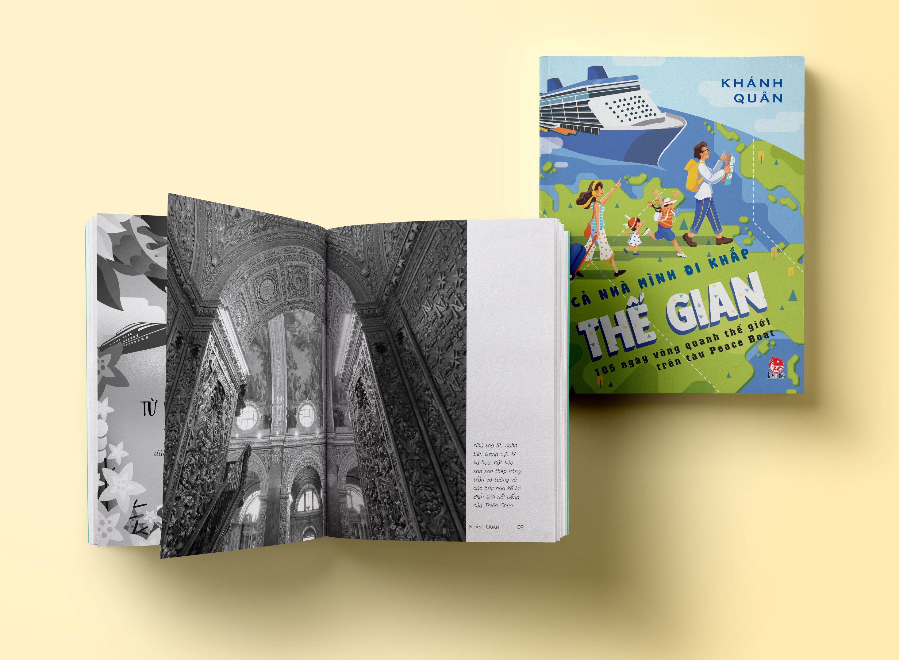 Toàn bộ chuyến đi được tác giả Khánh Quân viết lại thật hấp dẫn qua gần 300 trang sách Cả nhà mình đi khắp thế gian. Với 3 phần gồm Châu Á: Từ Nhật Bản đến Ấn Độ, Châu Âu: Từ kênh đào Suez đến Iceland, Châu Mĩ: Từ New York đến Hawall, anh đã đưa người đọc đến với một hành trình đầy ắp những trải nghiệm bất ngờ và lôi cuốn.