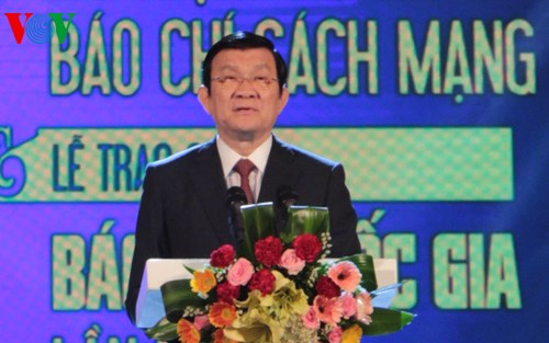 Phát biểu tại buổi lễ, Chủ tịch nước Trương Tấn Sang khẳng định: Suốt 90 năm qua, báo chí cách mạng luôn đồng hành cùng dân tộc, lớn lên cùng cách mạng, phục vụ cách mạng, phụng sự nhân dân. Chủ tịch nước Trương Tấn Sang nhấn mạnh trong tình hình hiện nay báo chí cần phát huy truyền thống vẻ vang, làm tròn trách nhiệm là lực lượng tiên phong xung kích trên mặt trận văn hóa tư tưởng, cần tiếp tục đổi mới, nâng cao chất lượng, hiệu quả công tác thông tin tuyên truyền, củng cố lòng tin của nhân dân vào Đảng và Nhà nước.