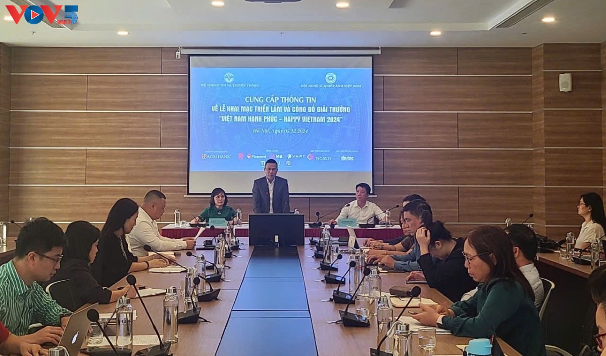Lễ khai mạc triển lãm và công bố giải thưởng Cuộc thi ảnh, video “Việt Nam hạnh phúc - Happy Vietnam năm 2024” sẽ diễn ra tối 11/12, tại Nhà hát Lớn Hà Nội. Sự kiện do Bộ Thông tin và Truyền thông phối hợp với Hội Nghệ sĩ Nhiếp ảnh Việt Nam tổ chức. Sự kiện được truyền hình trực tiếp trên Kênh truyền hình đối ngoại VTV4 của Đài Truyền hình Việt Nam (VTV); livestream trên kênh VTV Digital và trên Nền tảng quảng bá hình ảnh Việt Nam (https://vietnam.vn). Thông tin này được đại diện Ban Tổ chức công bố tại cuộc họp báo diễn ra sáng nay (05/12), tại Hà Nội.