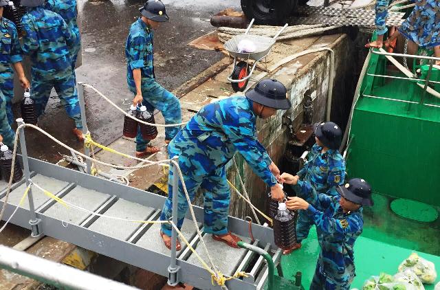 Các đoàn công tác cũng đưa gần 500 tấn hàng hóa là nhu yếu phẩm phục vụ Tết như thịt các loại, lá dong, bánh kẹo… đến với các huyện đảo.