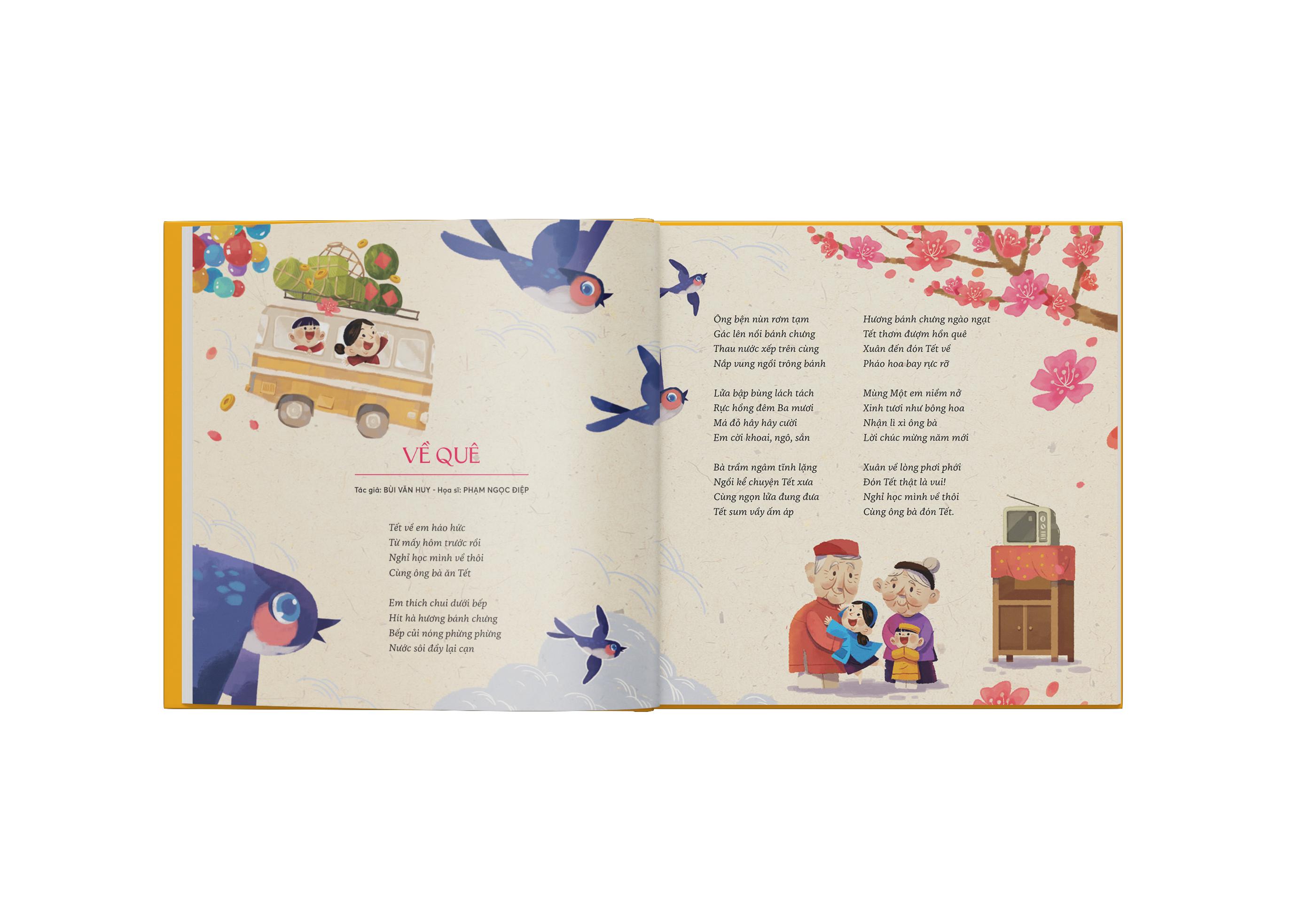 Với Nhâm Nhi Tết – Tân Sửu 2021, các tác giả đưa người đọc chu du xuyên qua không gian và thời gian, hòa mình trong không khí đón xuân trên khắp mọi miền đất nước, từ những vùng nông thôn yên bình, tới thành phố náo nhiệt, cùng đồng bào các dân tộc anh em khắp mọi miền đón Tết.