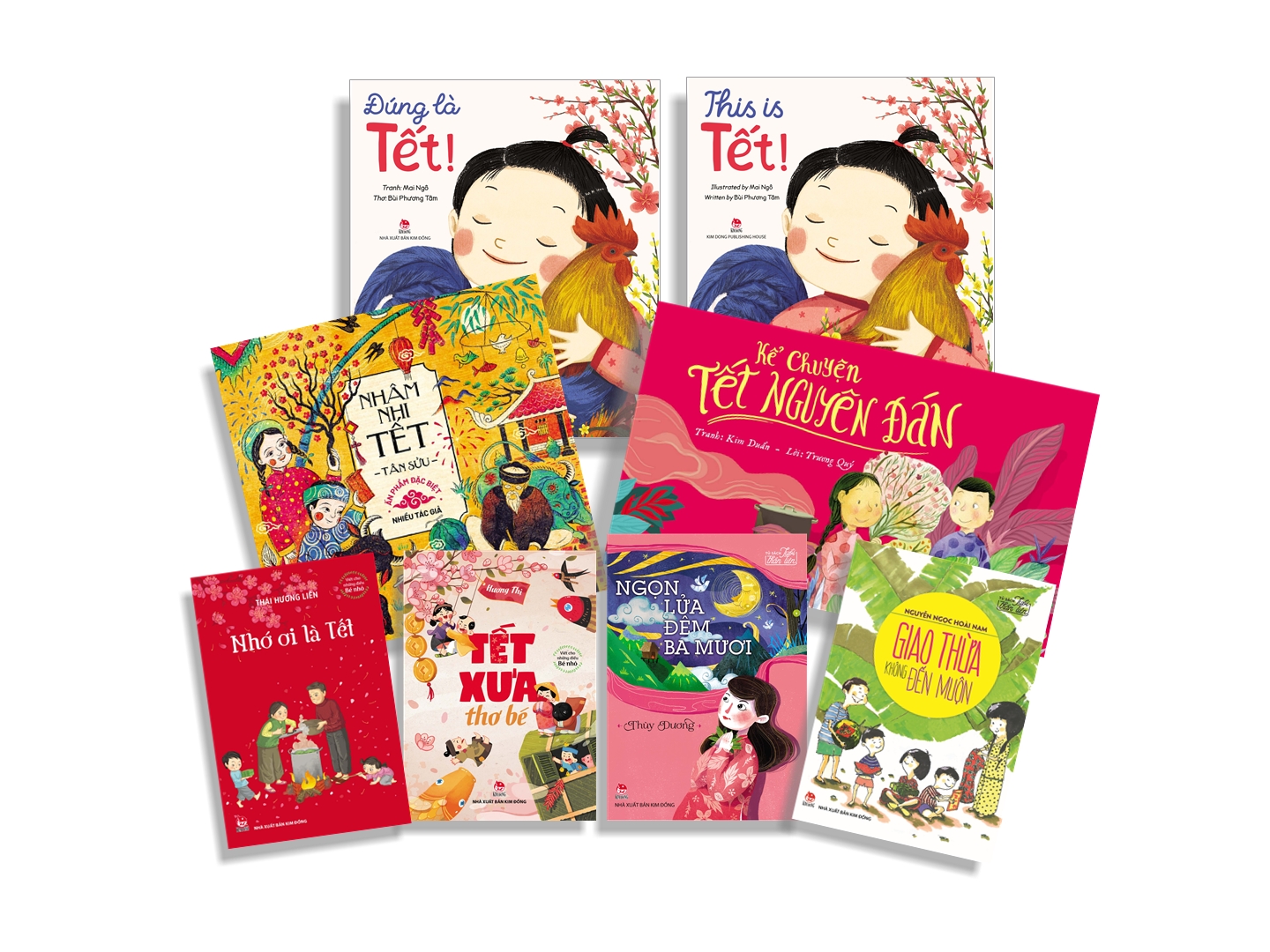 Trong dịp Tết Tân Sửu 2021 này, những cuốn SÁCH TẾT đặc sắc khác cũng được NXB Kim Đồng tái bản: “Kể chuyện Tết Nguyên Đán” (Lời: Trương Quý – Tranh: Kim Duẩn); hai tập tản văn trong bộ Viết cho những điều bé nhỏ: “Tết xưa thơ bé” (Hương Thị), “Nhớ ơi là Tết” (Thái Hương Liên); hai tập truyện ngắn trong Tủ sách Văn học Tuổi thần tiên: “Giao thừa không đến muộn” (Nguyễn Ngọc Hoài Nam), “Ngọn lửa đêm ba mươi” (Thùy Dương). Cuốn sách Tranh với những vần thơ ngộ nghĩnh “Đúng là Tết!” (Lời: Bùi Phương Tâm, Tranh: Mai Ngô) rất được yêu thích cũng trở lại cùng với phiên bản tiếng Anh “This is Tết!” để đáp ứng nhu cầu đọc sách của các độc giả nhí trong nước và quốc tế.