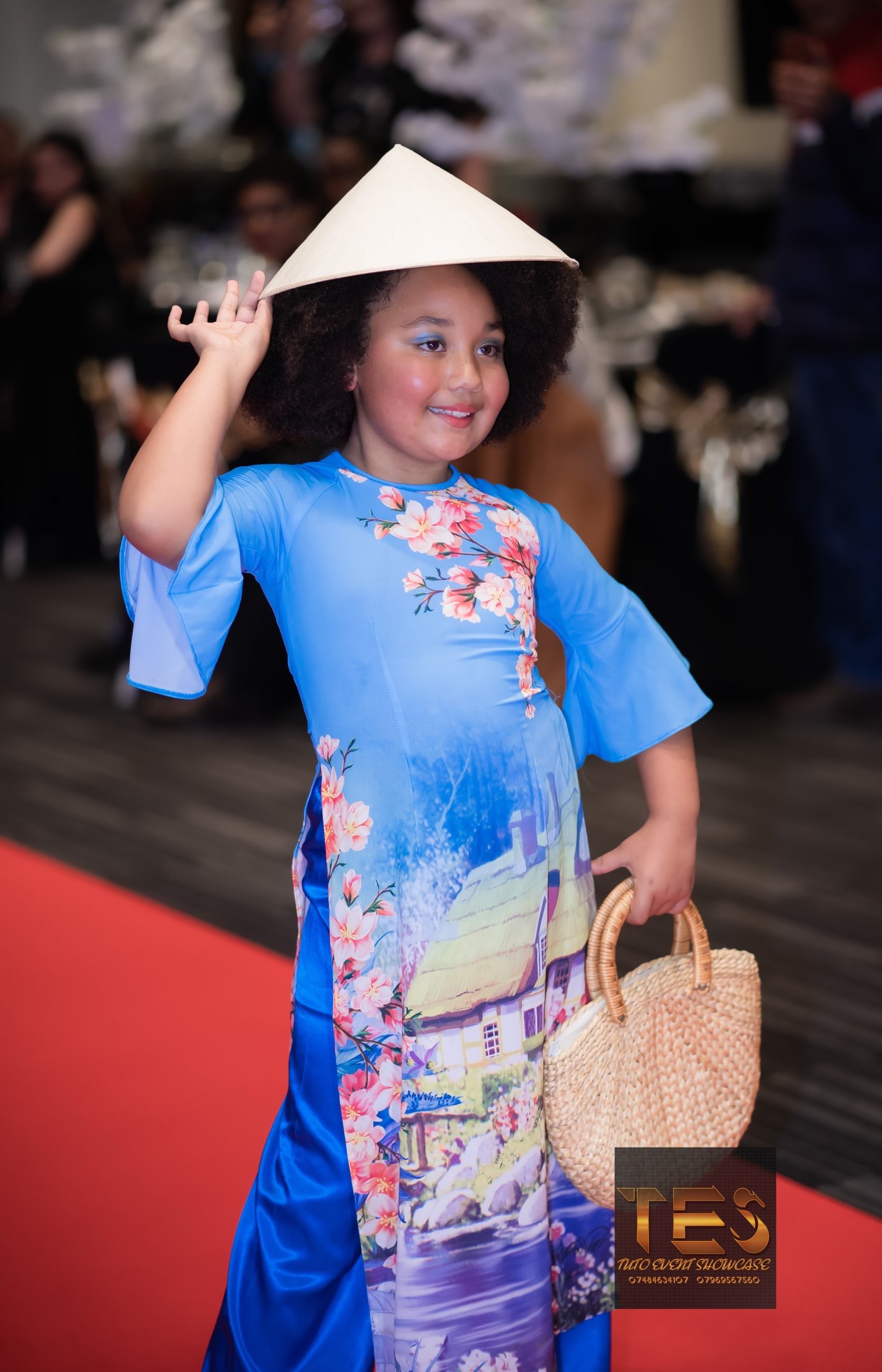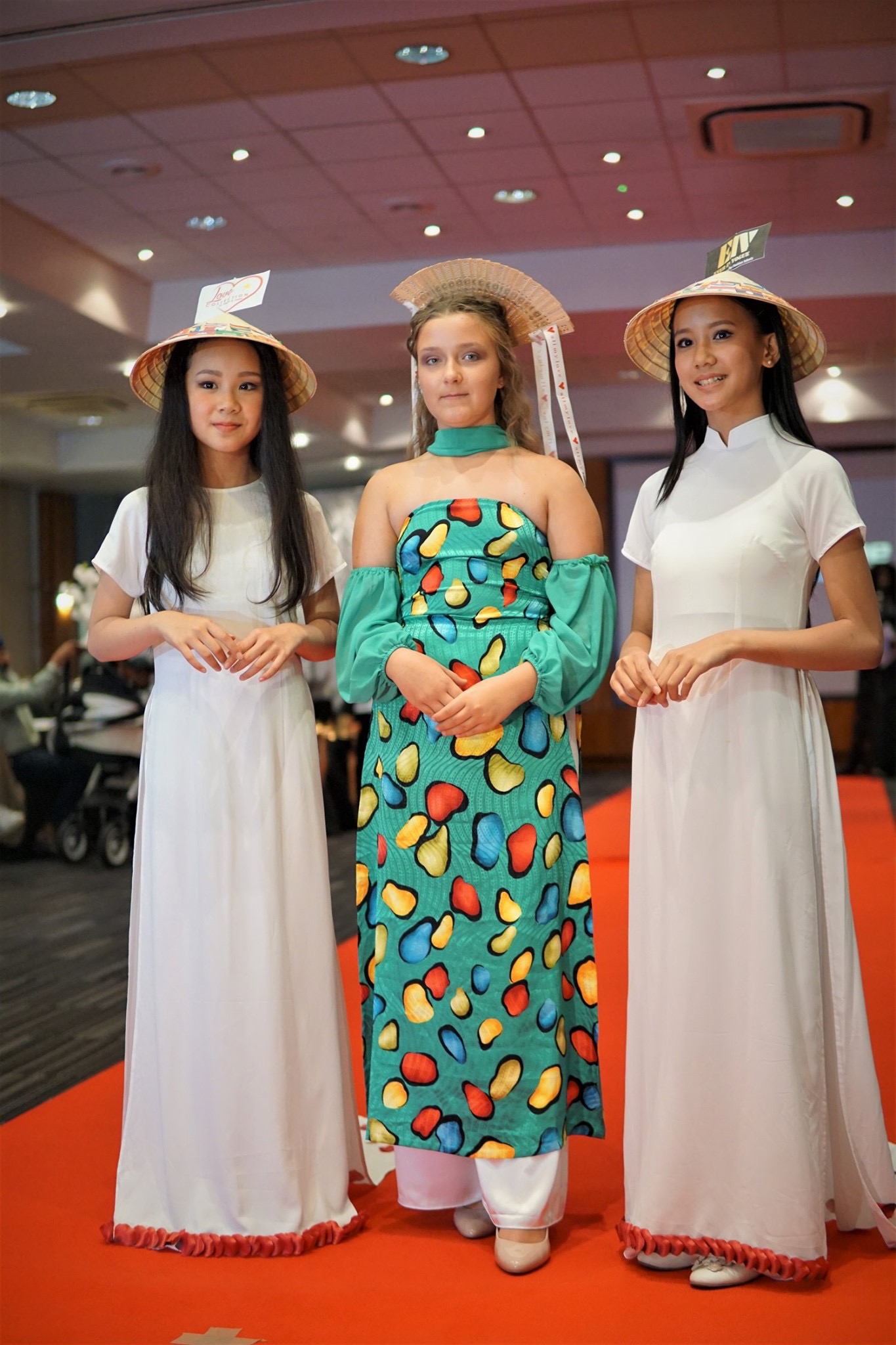 | Emily Nguyễn và Anna Hoàng cùng các mẫu nhí tại Anh trình diễn BST áo dài Việt Nam tại đêm Gala |