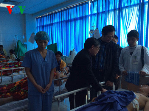 Bệnh viện Việt Đức cũng đã cử 14 bác sỹ, do đích thân Giáo sư, Giám đốc Bệnh viện Nguyễn Tiến Quyết làm trưởng đoàn. Qua thăm khám cho 28 bệnh nhân đang nằm tại Bệnh viện, Giáo sư Nguyễn Tiến Quyết đánh giá, hiện chỉ có 3 bệnh nhân bị chấn thương sọ não là những ca nặng; các bệnh nhân sau phẫu thuật hiện ổn định, không có trường hợp nào cần phải chuyển về Hà Nội.