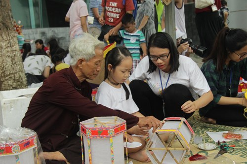 Trẻ em được tìm hiểu về đồ chơi Trung thu truyền thống của người Việt trong dịp Tết Trung thu.