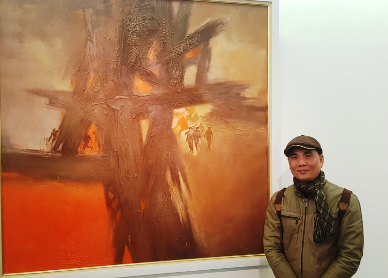 Ông Bùi Anh Hùng, Hội viên Hội Mỹ thuật Việt Nam, người có tác phẩm chuyển giao cho Bảo tàng Mỹ thuật Việt Nam, cho biết: "Tôi đang công tác tại Bảo tàng lịch sử quân sự Việt Nam. Tên tác phẩm của tôi là “Ngày về”. Tác phẩm ra đời trong hoàn cảnh năm 2017 chúng tôi có tổ chức một trại sáng tác ở Đà Lạt với sự tham gia của 15 họa sĩ ở trong và ngoài quân đội. Nội dung tác phẩm nói về năm 1954 khi những chiến sĩ từ Điện Biên trở về tiếp quản Thủ đô Hà Nội. Trong không khí hào hùng, một màu rực lửa của cách mạng. Bên cạnh đó cũng có bóng dáng những người lính Pháp rút khỏi cầu Long Biên. Độc đáo là thủ pháp nghệ thuật trừu tượng. Những vệt đan chéo trên tranh như gợi nên nhịp cầu Long Biên và sự đổ nát, tàn phá của chiến tranh của chiến tranh".