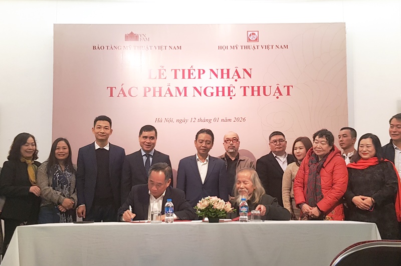 Sáng nay (12/1/2026), Bảo tàng Mỹ thuật Việt Nam ở Thủ đô Hà Nội tổ chức lễ tiếp nhận gần 1.000 tác phẩm mỹ thuật do Hội Mỹ thuật Việt Nam chuyển giao. Đây là đợt tiếp nhận tác phẩm có quy mô lớn nhất trong lịch sử Bảo tàng Mỹ thuật Việt Nam.