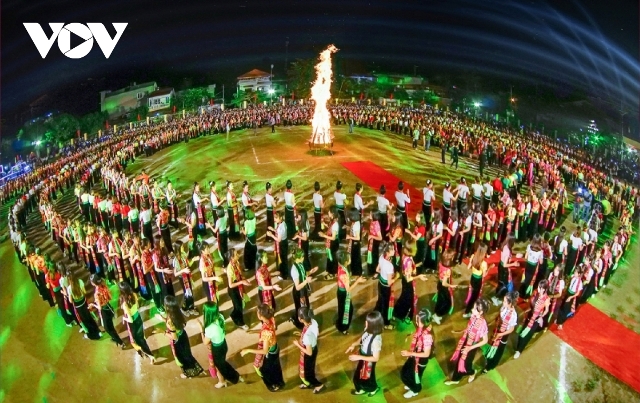 Màn múa xòe trong đêm khai mạc lễ hội văn hóa, du lịch Mường Lò năm 2018. Ảnh: VOV |