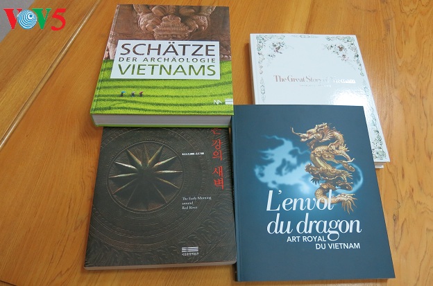 Cuốn sách Báu vật khảo cổ Việt Nam ( phía trên, bên trái). ( Thu Hoa/VOV5) |