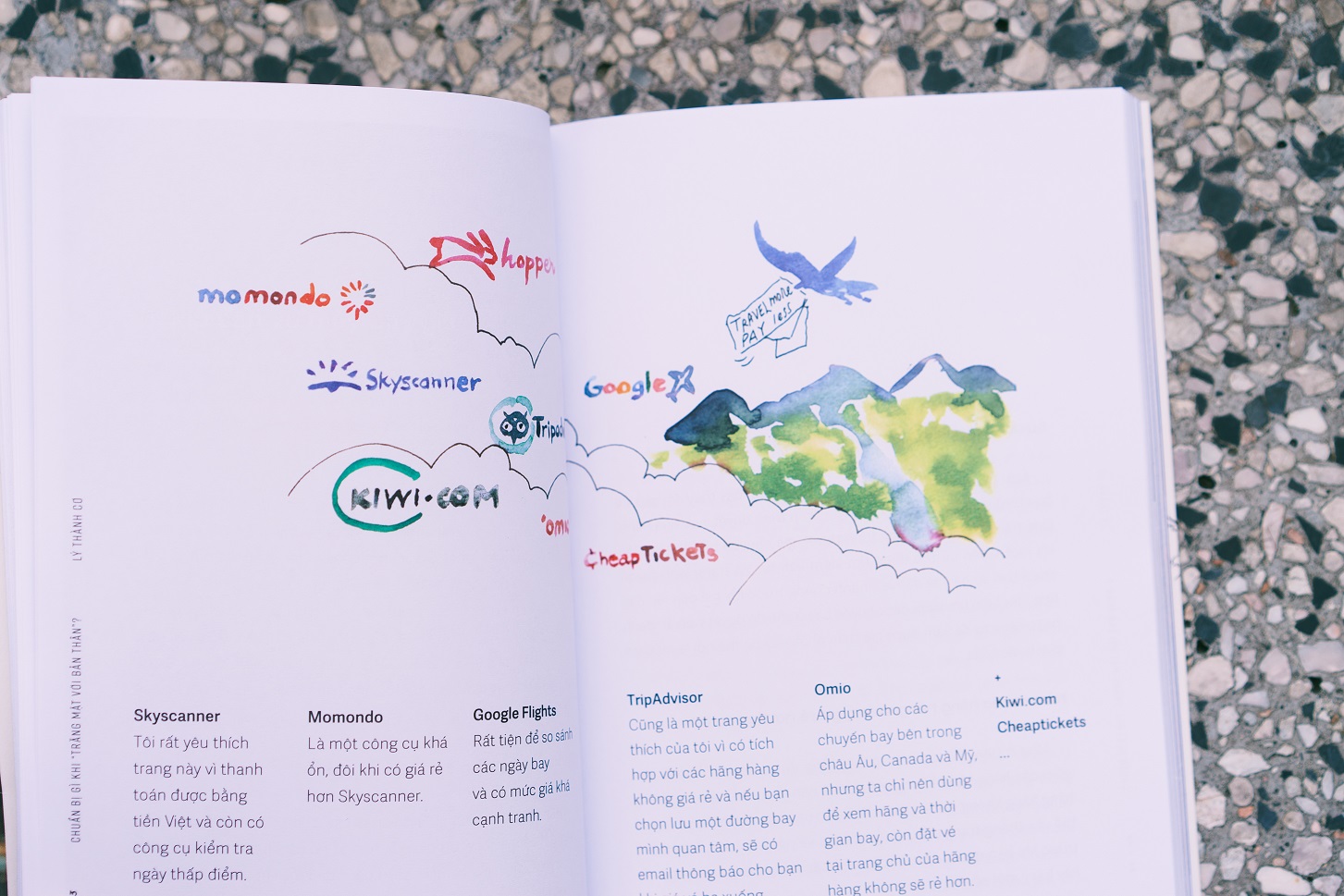 Tác giả dành phần lớn dung lượng cuốn sách để chia sẻ những kinh nghiệm du lịch hữu ích và chất lượng có thể áp dụng trong nhiều hoàn cảnh: cách lập kế hoạch và lên lịch trình, mẹo săn vé máy bay và đặt phòng giá rẻ, kinh nghiệm sắp xếp hành lí một cách khoa học, kĩ năng tự chăm sóc bản thân, bí quyết sống sót qua những chuyến bay dài, jet lag, đối diện với chuyện thất lạc hành lí hay mất cắp… Và cả việc vượt qua nỗi sợ hay sự cô đơn khi chỉ có một mình ở những nơi xa lạ!