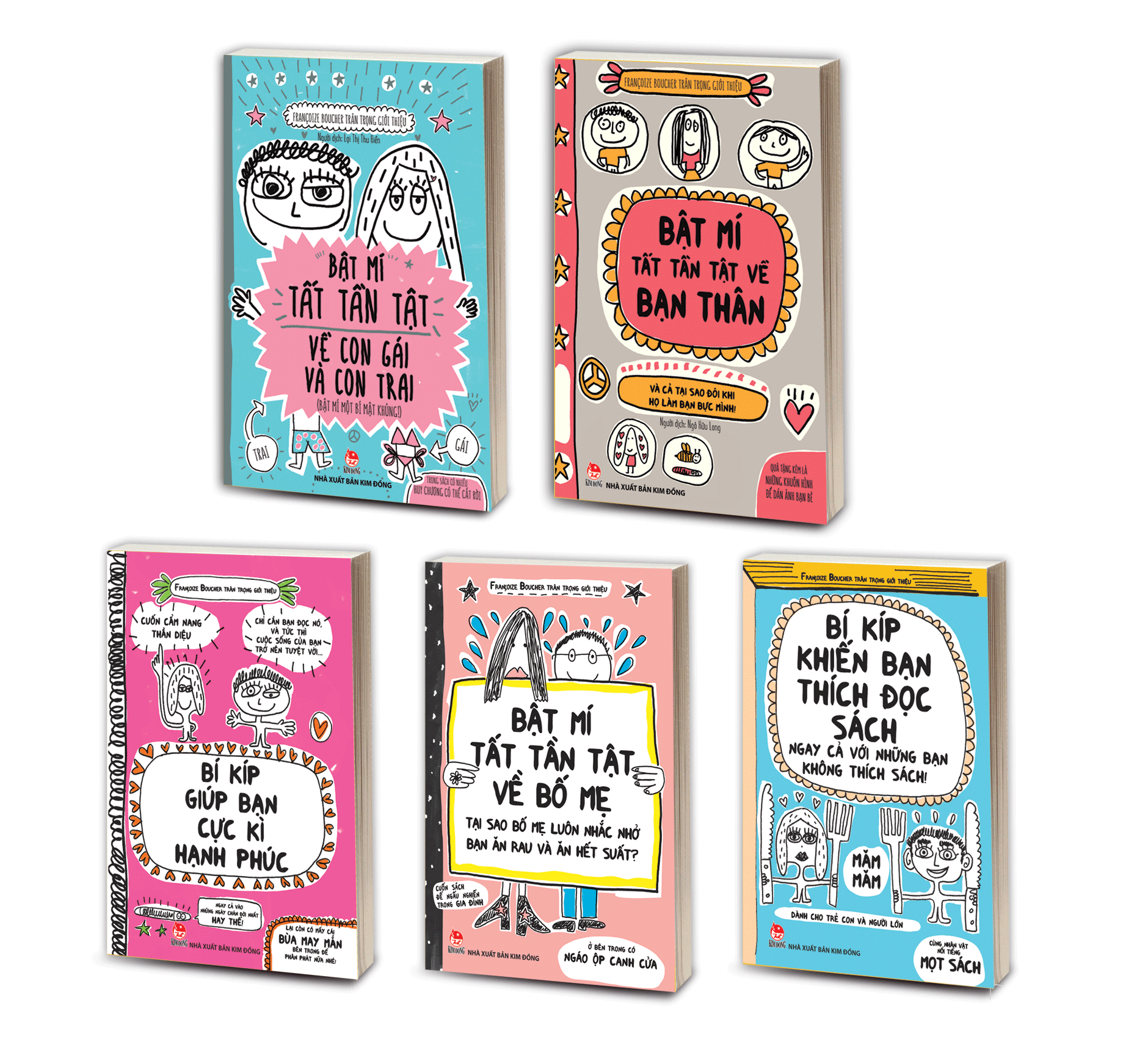 Nhân dịp Ngày Quốc tế Hạnh phúc 20/3, hai cuốn mới nhất trong sê-ri Bí kíp giúp bạn hạnh phúc là Bật mí tất tần tật về con gái và con trai, Bật mí tất tần tật về bạn thân của họa sĩ Francoize Boucher vừa được Nhà xuất bản Kim Đồng ra mắt độc giả.