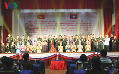 Đoàn Văn công quân khu 9 Quân đội Nhân dân Việt Nam gồm 45 nghệ sỹ, diễn viên đã có nhiều hoạt động biểu diễn tại một số tỉnh của Lào từ ngày 18-28/8.