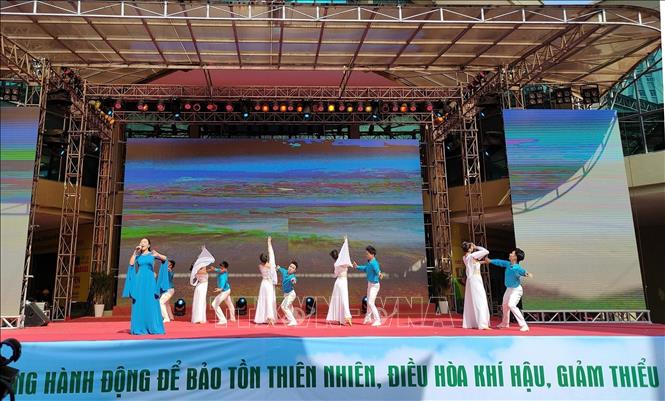 Nhiều bài hát có chủ đề về môi trường được biểu diễn trong chương trình. Ảnh: TTXVN |