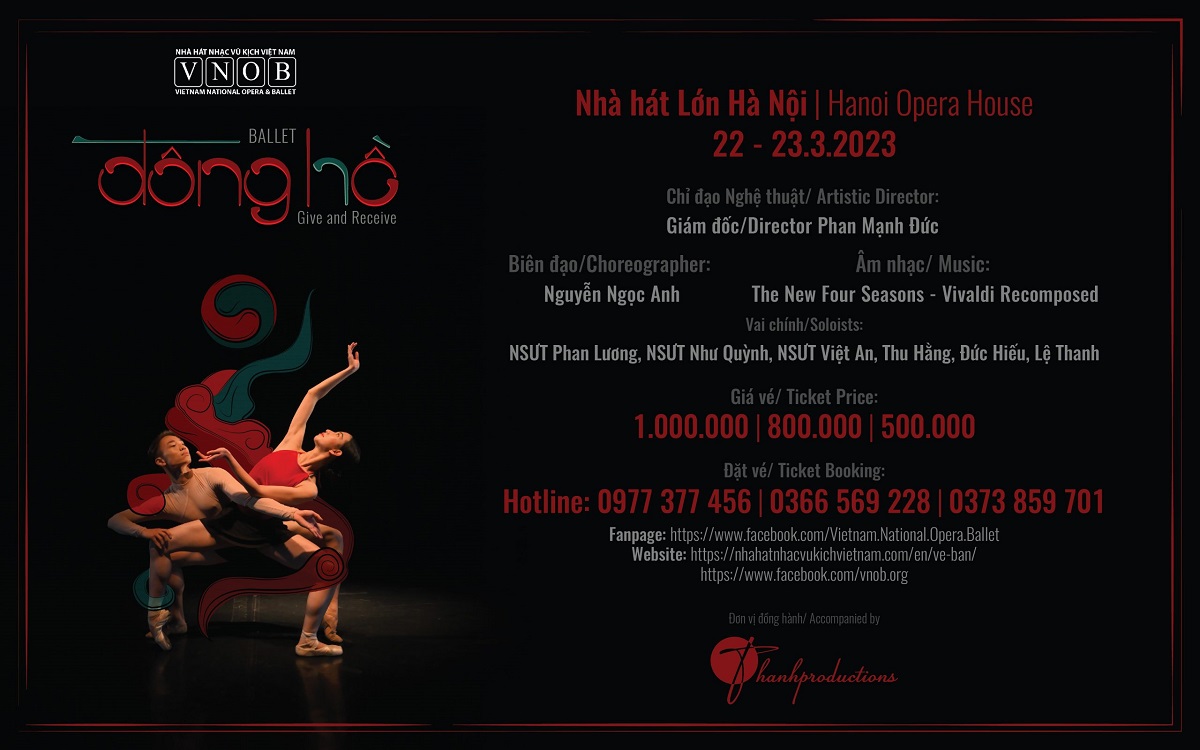 Hôm nay (6/3), Nhà hát Nhạc vũ kịch Việt Nam (VNOB) cho biết chương trình vũ kịch “Đông Hồ” lấy cảm hứng từ những bức tranh dân gian nổi tiếng của Việt Nam sẽ diễn ra tối 22/3 và tối 23/3 tại Nhà hát Lớn Hà Nội.