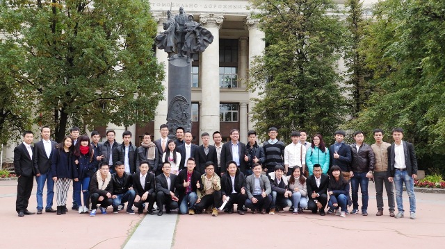 | Đoàn chụp ảnh kỷ niệm với các sinh viên Việt Nam đang học tại trường MADI |