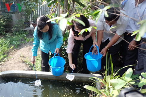 | Bộ trưởng Bộ y tế Nguyễn Thị Kim Tiến thả cá diệt lăng quăng |