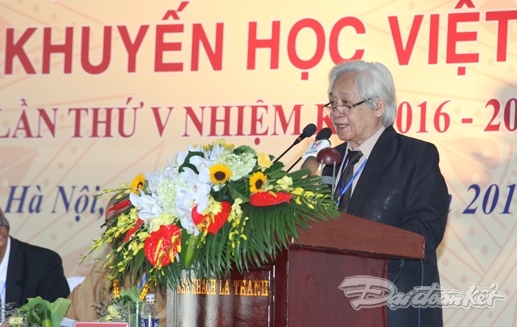 | GS Phạm Tất Dong-Phó Chủ tịch kiêm Tổng thư ký Hội Khuyến học Việt Nam phát biểu tại Đại hội.Ảnh: daidoanket.vn |