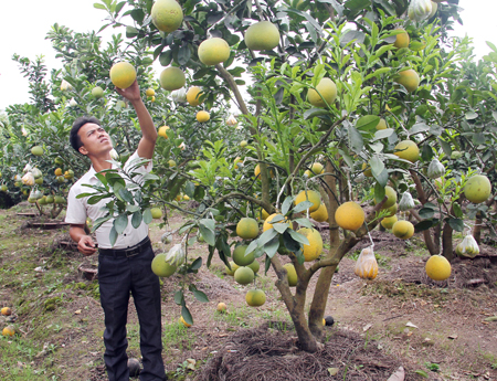 | Cây bưởi ghép nhiều quả được khách hàng nhiều nơi ưa chuộng. Ảnh: baohungyen.vn |
